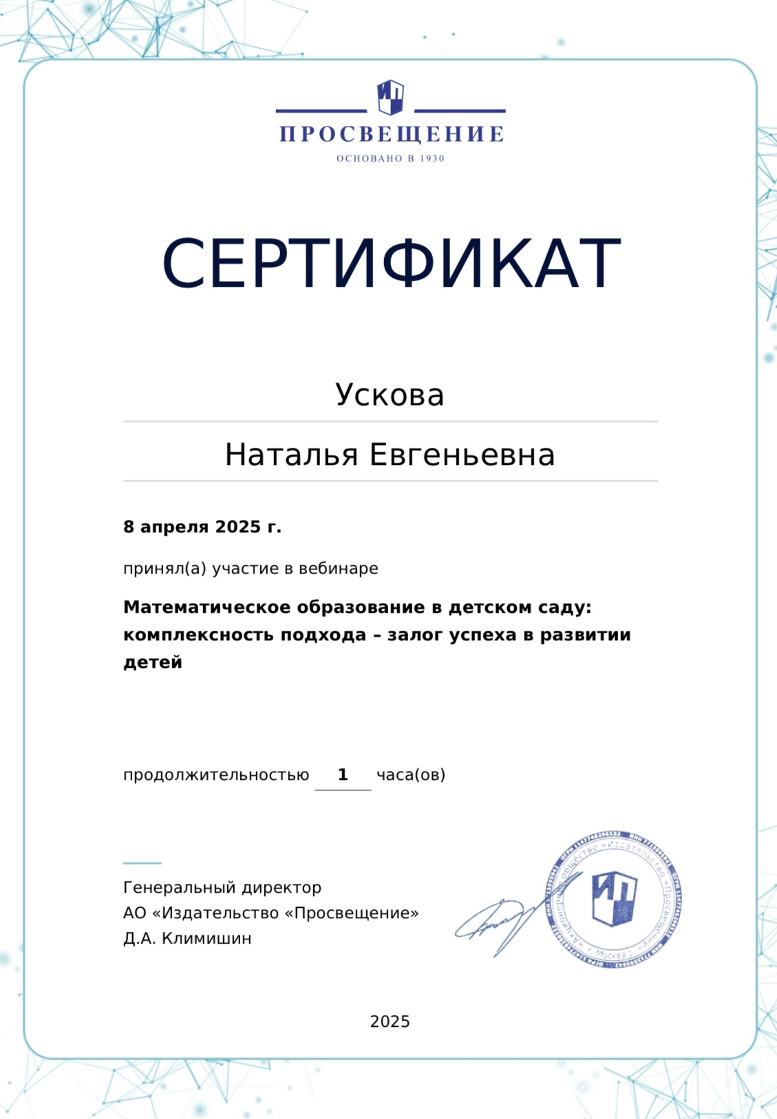 Математическое образование в детском саду:комплексность подхода - залог успеха в развитии детей