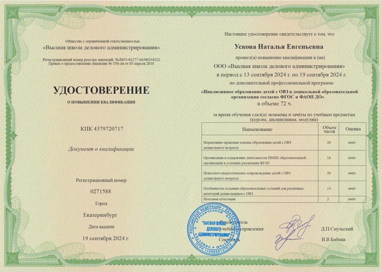 (ООО «Высшая школа делового администрирования». 72часов. Направленность: иное).