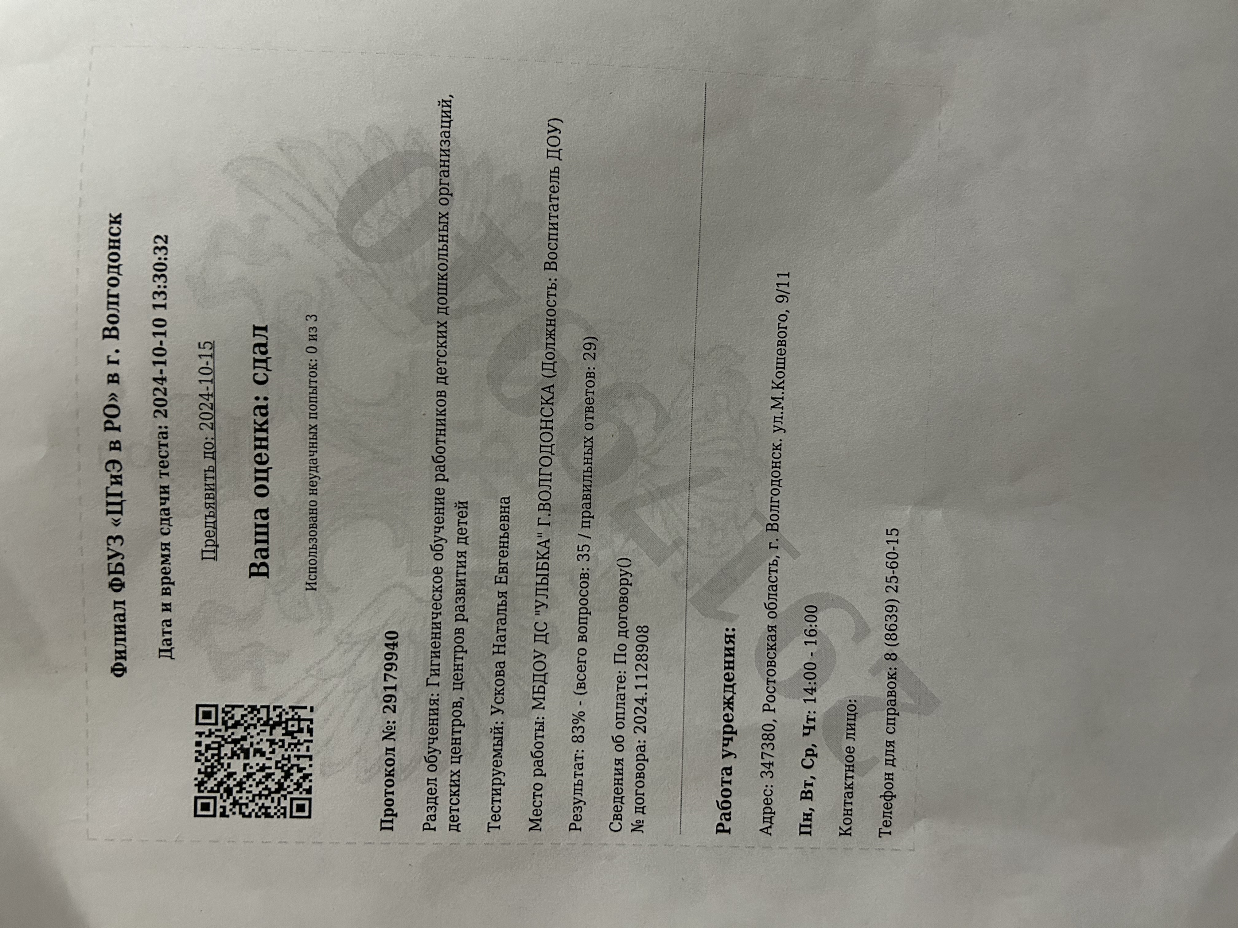 (Филиал ФБУЗ «ЦГиЭ в РО» в г. Волгодонск. Направленность: иное).